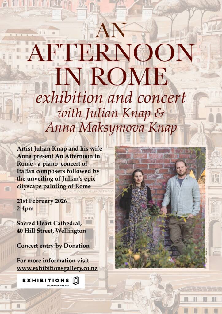 Come along for an exhibition and concert with Wellington artist Julian Knap and Anna Maksymova Knap.