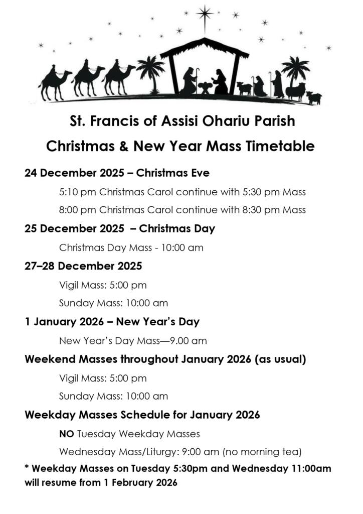 | December 25, 2025 | 10.00am: Christmas Day Mass at St. Teresa Church. |