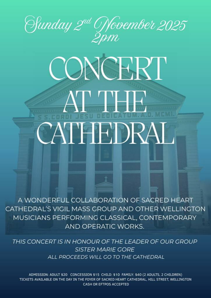 The Cathedral Saturday Vigil Music Group of Sacred Heart Cathedral has been putting together a concert for Sunday 2nd of November at 2.00pm – and you’re invited!