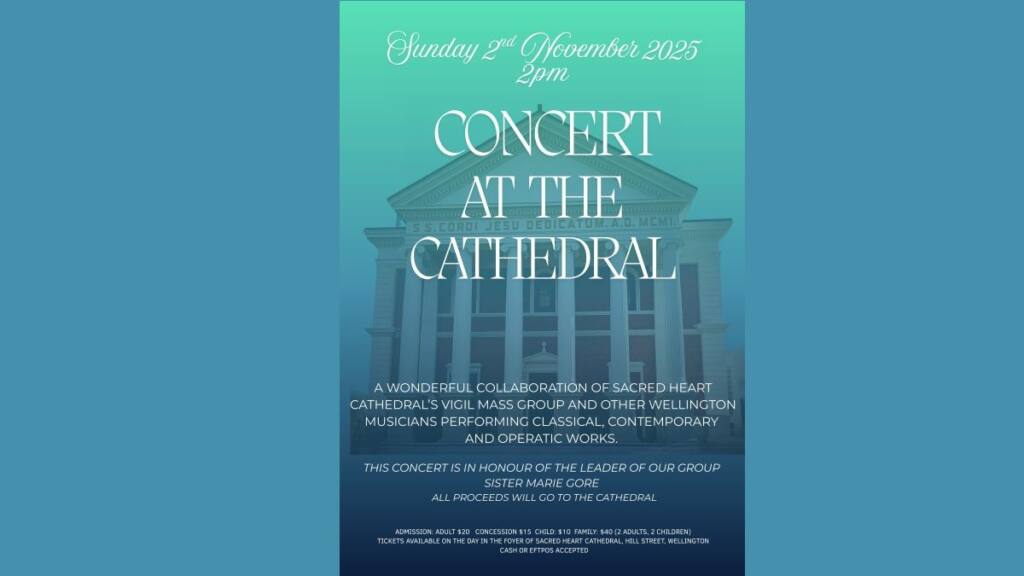 It is primarily to honour the group’s leader, Sr Marie Gore, and it is also a fundraiser for the Cathedral. The programme is of classical, operatic, and contemporary music, all performed by the Vigil Mass Group and other Wellington musicians.