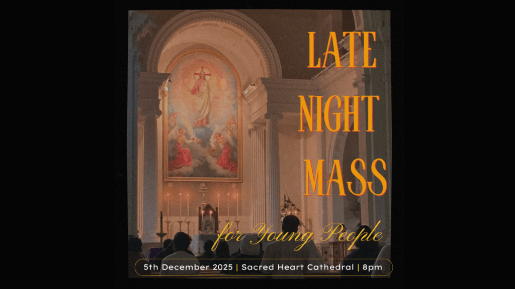 Join us on Friday, 5 December at Sacred Heart Cathedral (40 Hill Street in Wellington’s Thorndon). Mass begins at 8.00pm, followed by fellowship in the foyer. Bring a plate and a friend to celebrate together in the Holy Sacrifice of the Eucharist!