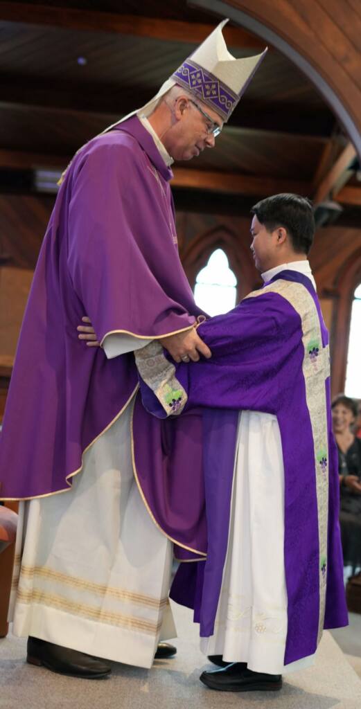 It was a blessed last day of summer on Saturday, 28 February at St Mary’s Church in Blenheim, as Joseph Tuan van Nguyen (also known as TJ) was ordained to the Diaconate. In the presence of Archbishop Paull, clergy, family who came all the way from Vietnam, and parishioners, it was an incredible moment marking a commitment to serving the Lord and growing His kingdom here in Aotearoa New Zealand and on earth.