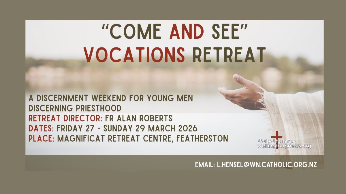 Magnificat Retreat Centre, Cross Creek Farm, Featherston 60A Cross Creek Road,, Western Lake, New ZealandCome along for a weekend discernment retreat for young men discerning a call to the priesthood.